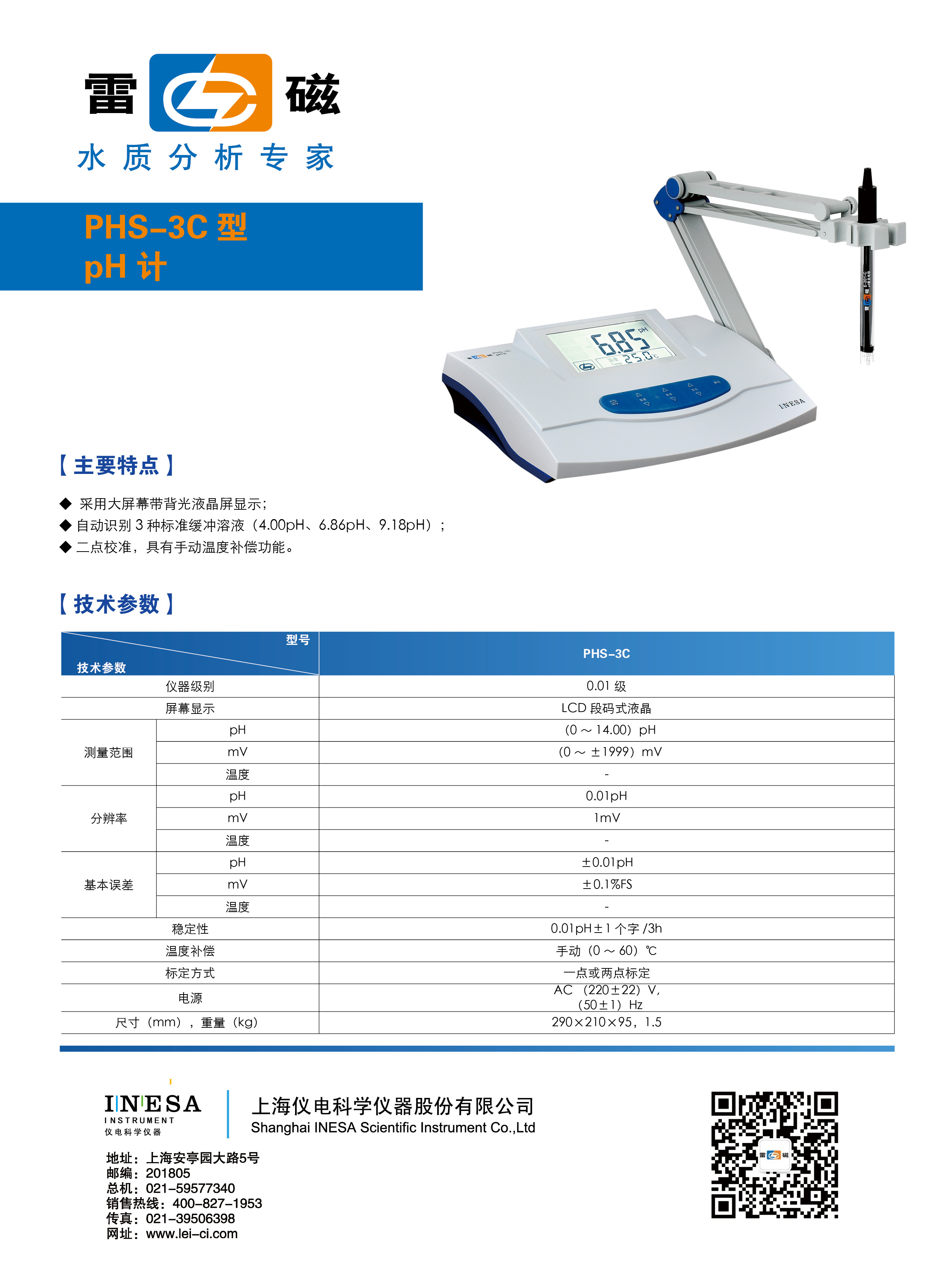 留言板——上海雷磁 實驗室PH計 PHS-3C