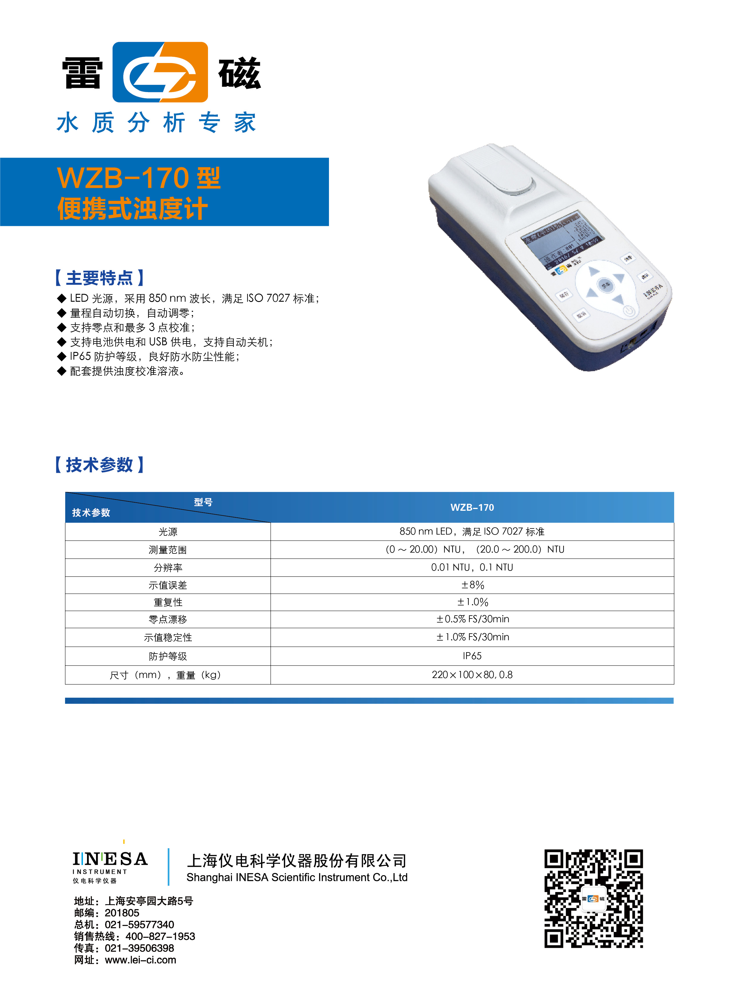 留言板——上海雷磁便攜式濁度計WZB-170型