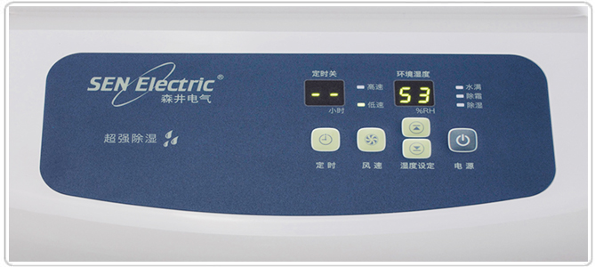 除濕:9段濕度設置 (35%~70%,連續除濕);環境濕度LED顯示屏;導風板5段角度調節;內部干燥功能:防霉除菌;斷電記憶功能;壓縮機保護裝置;自動除霜裝置;磁力感應水滿自動停機;透明防溢水水箱;連續排水接口