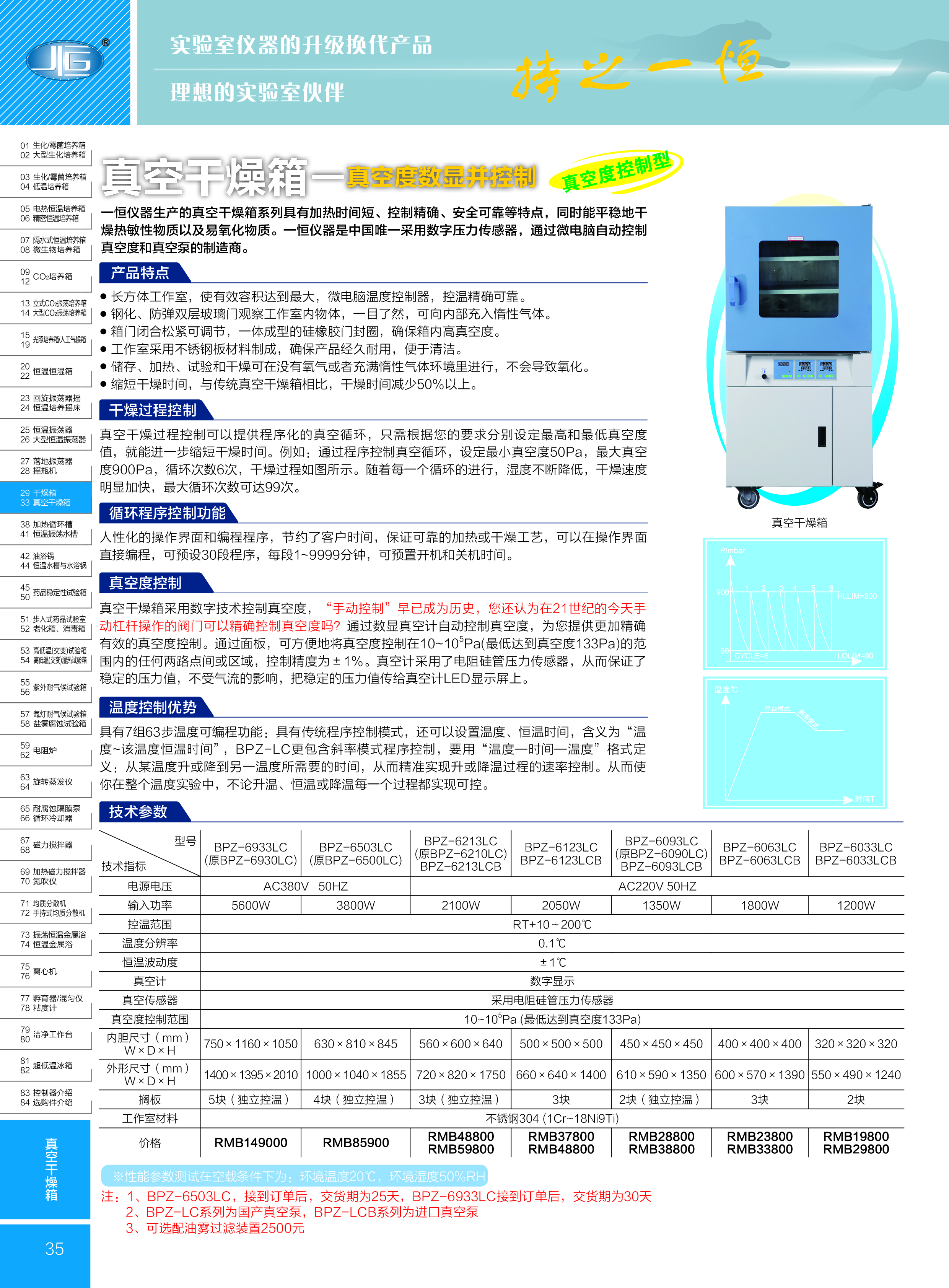 一恒儀器生產的真空干燥箱系列具有加熱時間短、控制精確、安全可靠等特點,同時能平穩地干燥熱敏性物質以及易氧化物質。一恒儀器是中國唯一采用數字壓力傳感器,通過微電腦自動控制真空度和真空泵的制造商。...
