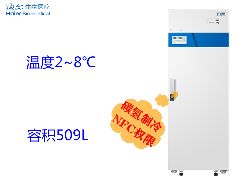 海爾2~8°C醫用冷藏箱HYC-509F,容積509L,碳氫制冷劑,不破壞臭氧層,綠色環保;多重安全保障,聲光電及遠程報警提醒;NFC 權限管理系統,儲品信息可控可追溯;選配物聯模塊,手機 APP實時查詢溫度情況...